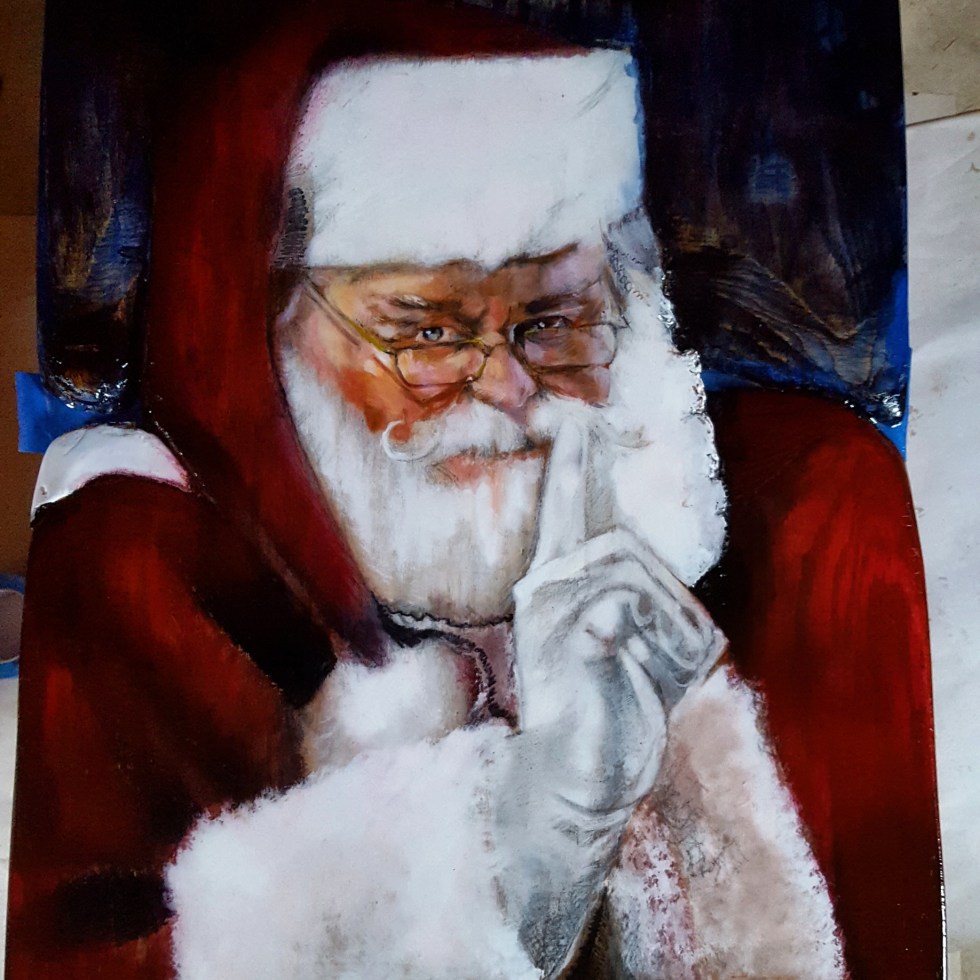 commissioned/ mix media on wood “santa claus #2”